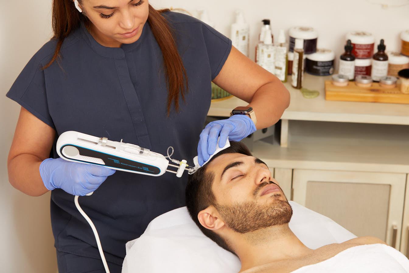 Mesotherapy delivers vitamins, minerals, and hyaluronic acid directly into the skin through micro-injections. It revitalizes, brightens, and hydrates tired or dull skin.